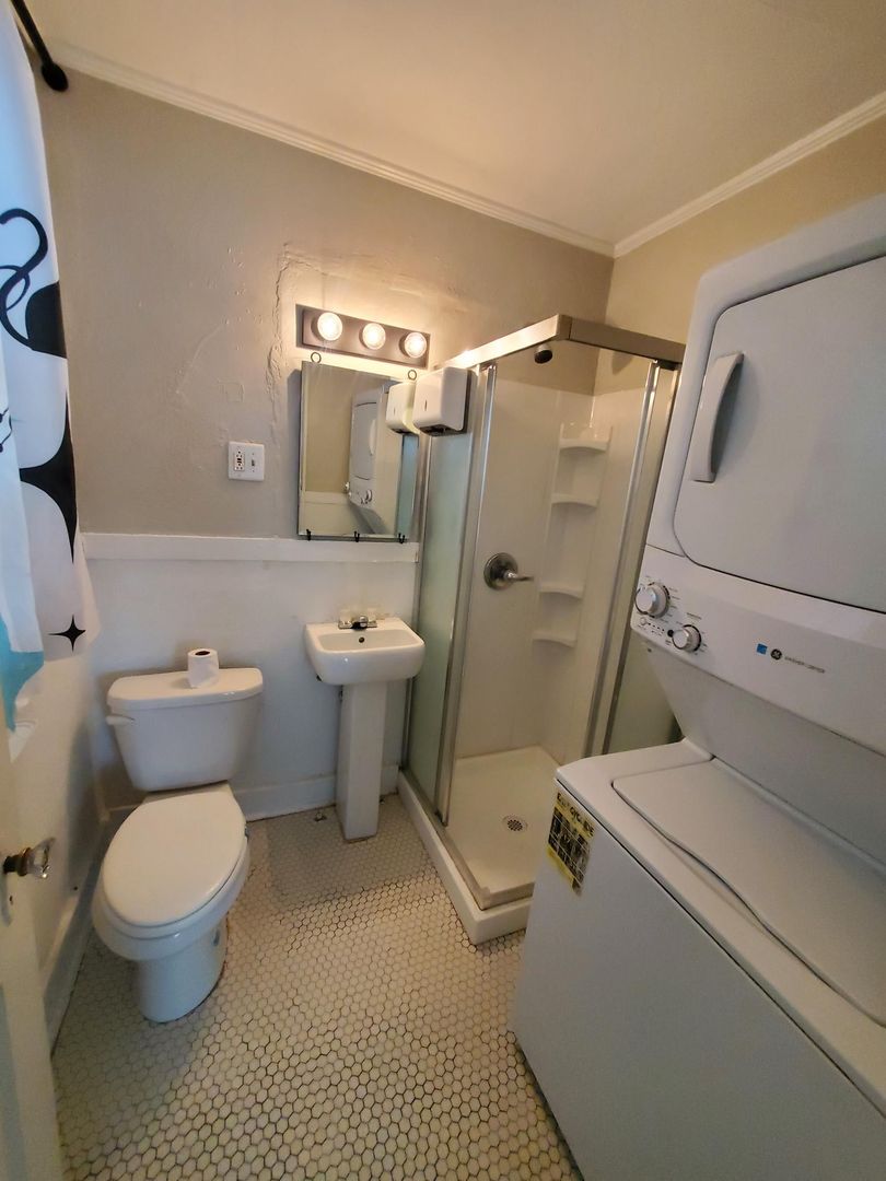 This unit comes with a convenient stacked washer and dryer.