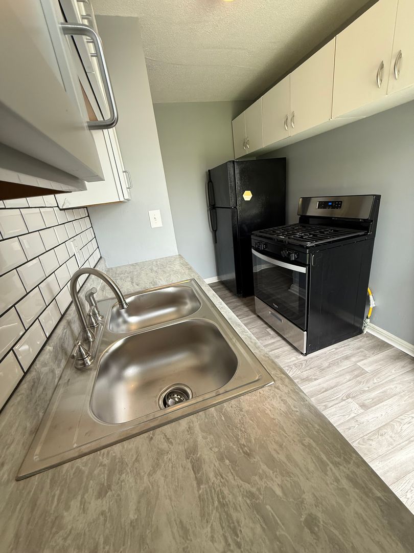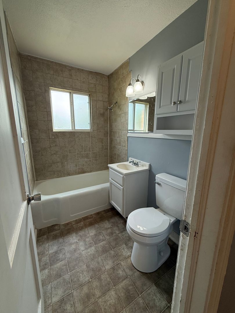 If you’re needing some space for a large couch and tv, no worries here. The remodeled living room is awesome. The floor is new and so nice! Everything is new including the bathroom.