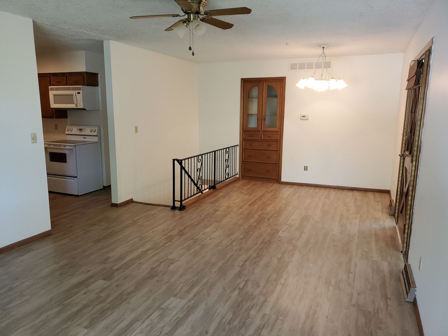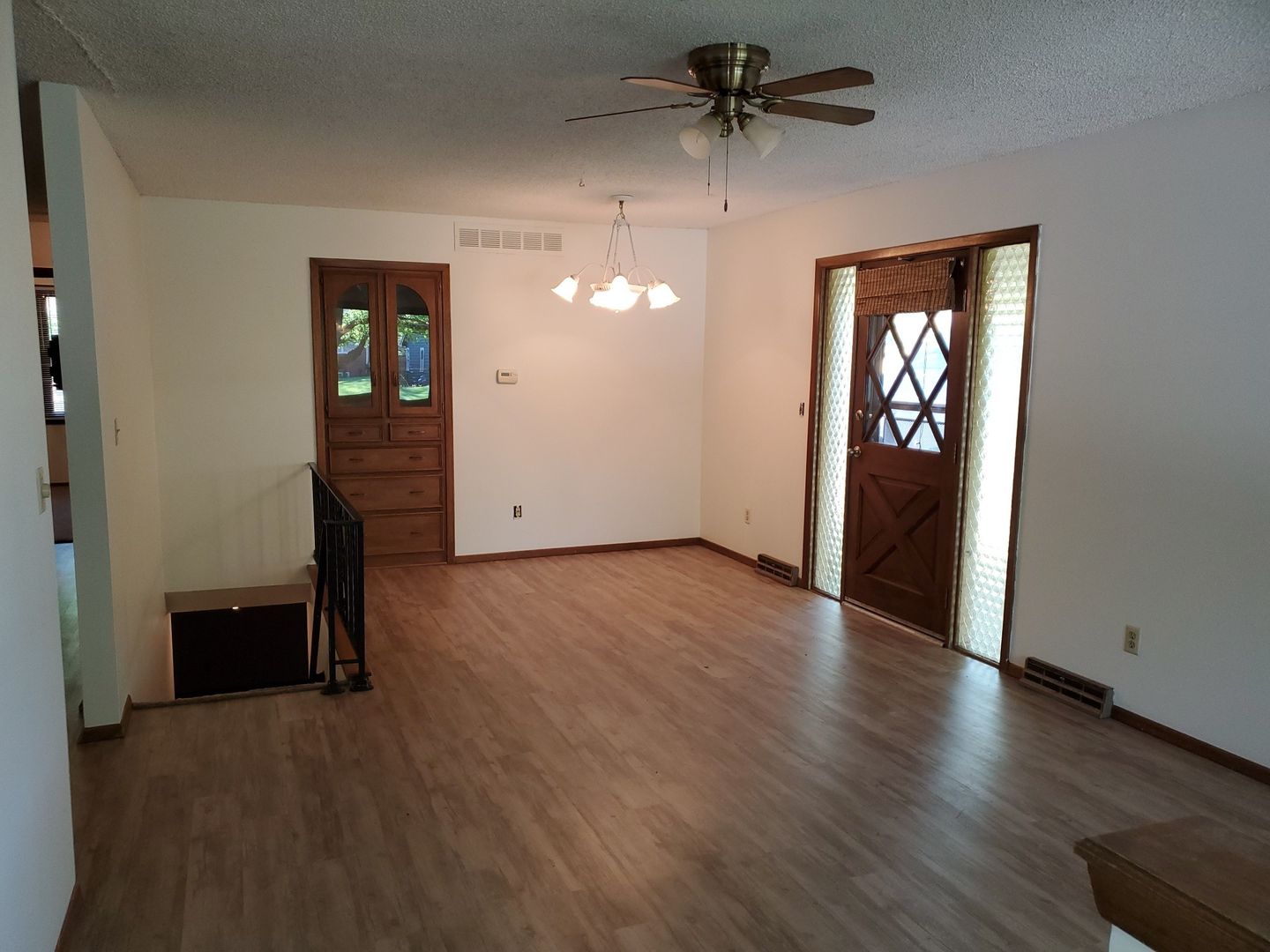 2+ Bedroom and 1 and 3/4 bath. Wood type flooring in Lr, Dr, Ki and hall. finished basement with family room 3/4 bath and 3rd. non conforming room ( No fire escape) with closet. large covered patio and extended driveway. Fenced yard with storage shed. One car attached garage. storage rooms in basement.